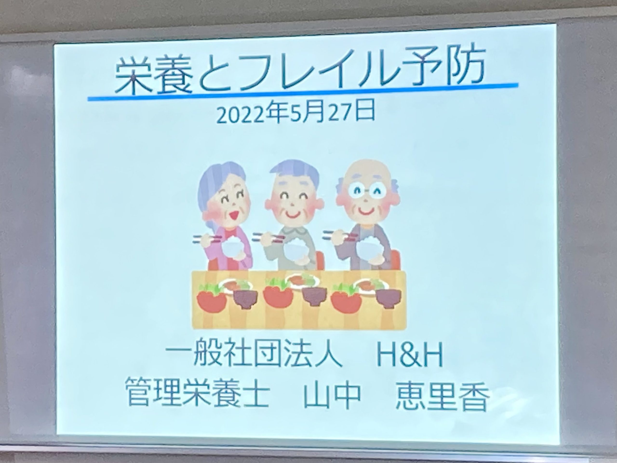 初日の今日は、山中(管理栄養士)が「栄養とフレイル予防」の講話を約60分行いました。